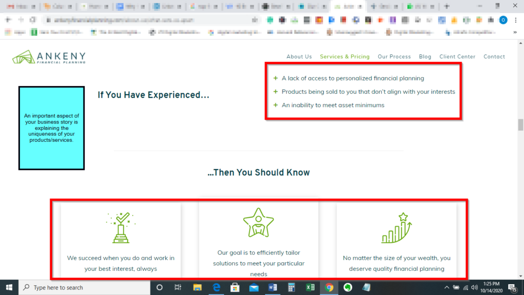 To make last week’s article more relatable, I researched financial advisors’ websites to give examples of how this storytelling works.