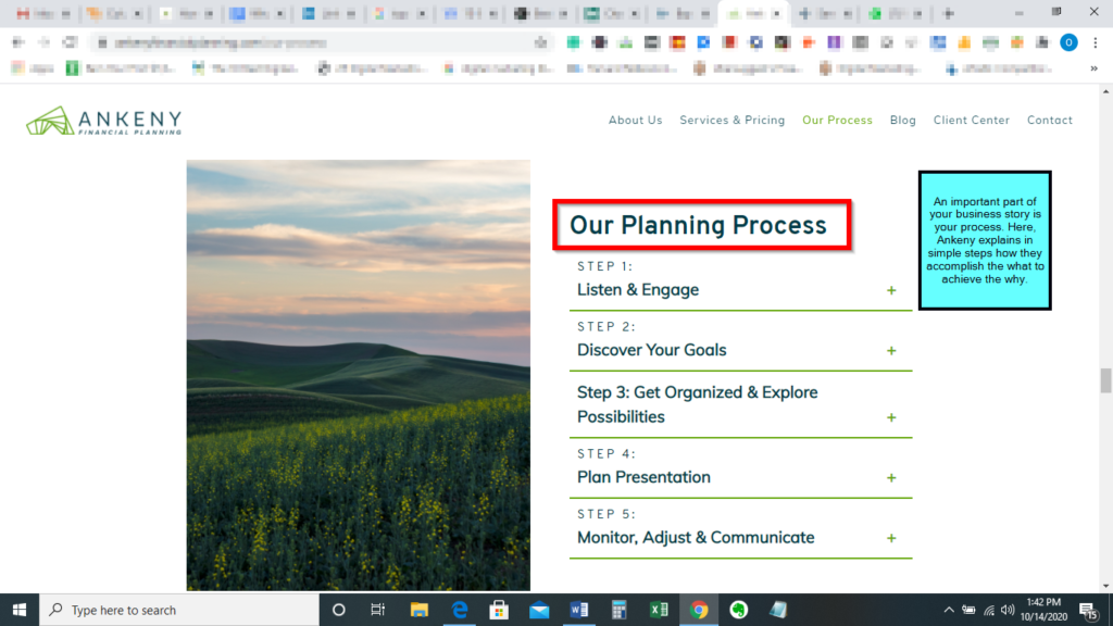 An essential part of your business story is your process. Here, Ankeny explains in simple steps how they accomplish the “what” to achieve the “why.”