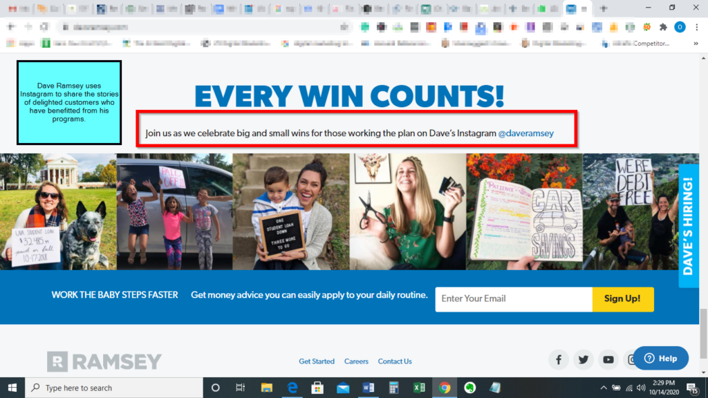 Dave Ramsey uses Instagram to share the stories of delighted customers who have benefitted from his programs.