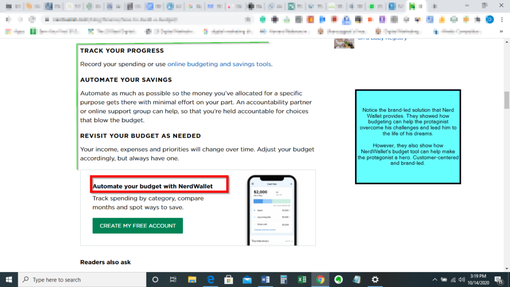 Nerd Wallet goes ahead to show how the budgeting tool they provide works. In other words, we can help you overcome the obstacle on your way to glory, and here is how we do it. This article is an example of masterful storytelling.