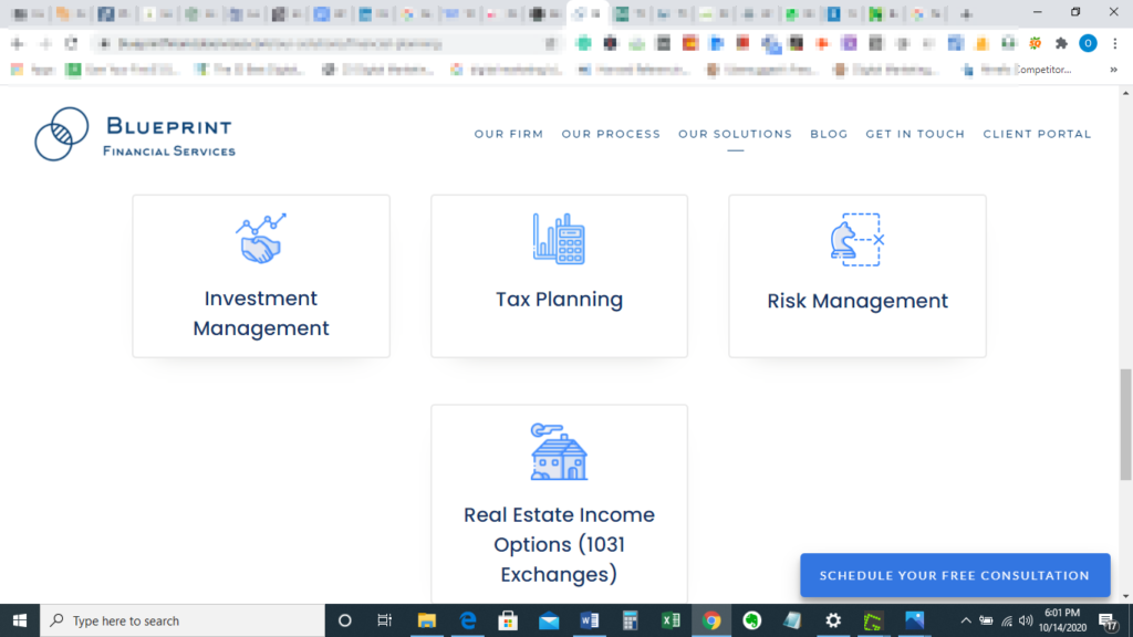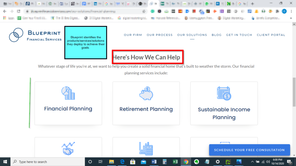 Blueprint Financial Services identifies the products/services/solutions they deploy to achieve their goals.