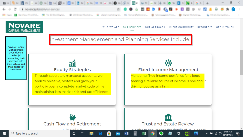 Novare Capital Management even does a better job connecting their services with their values and their goals for the clients.
