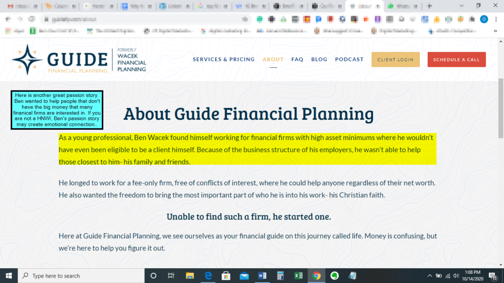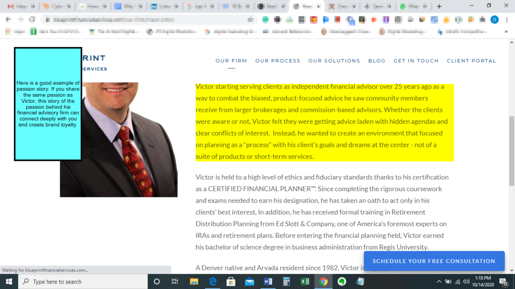 I expected that every financial advisor would tell their passion story on their websites. However, that is not the case.