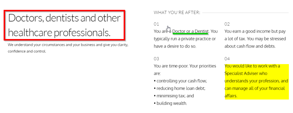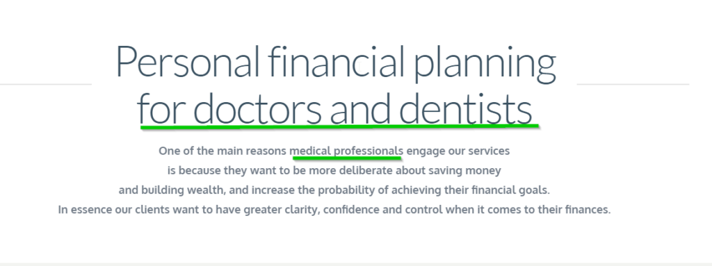 This line is particularly important: “You would like to work with a Specialist Adviser who understands your profession, and can manage all of your financial affairs.” Won’t you if you are a medical professional? A specialist who understands your unique circumstances or a generalist who perhaps has never worked with any medical professional?