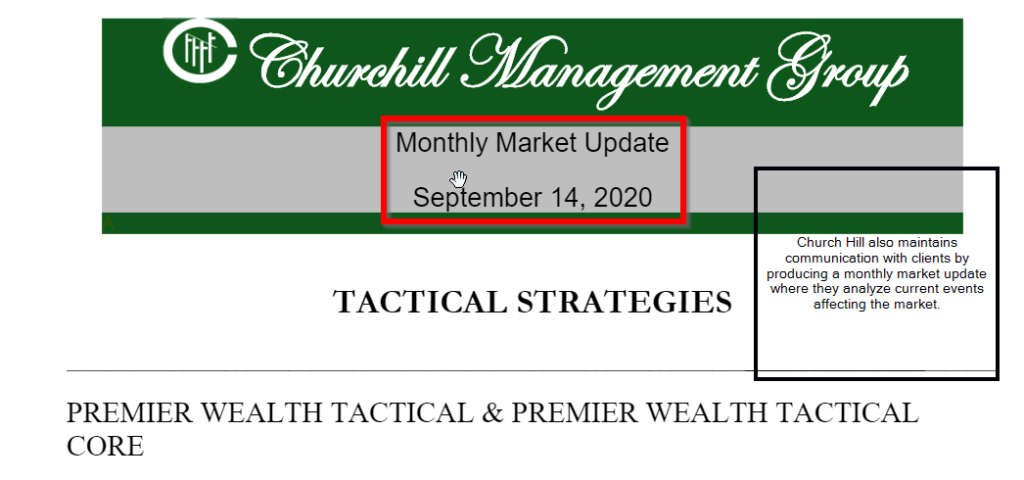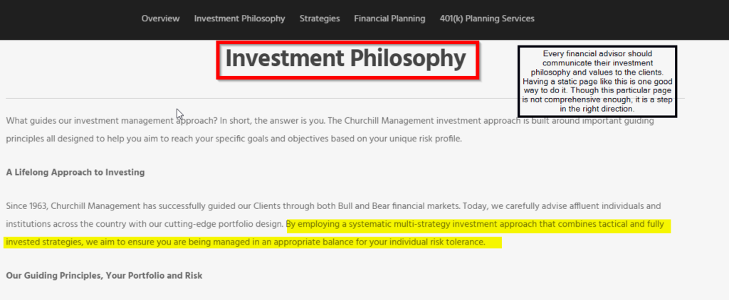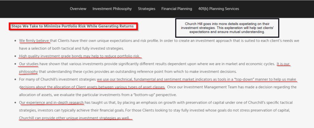 Church Hill dedicates a page on its website to the investment philosophy that guides their decisions. Everyone who visits the website can read this page and gain clarity on how Church Hill manages its clients’ money.