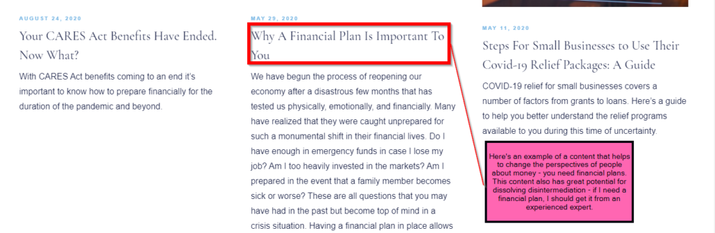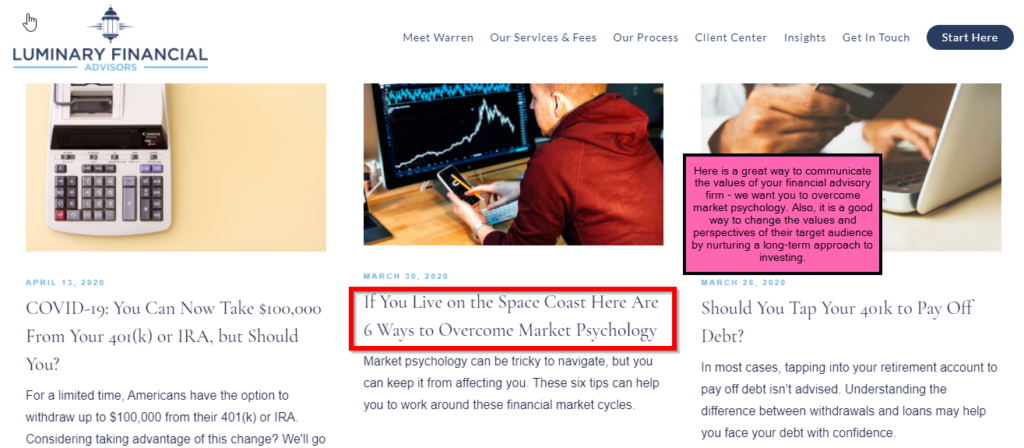 I found some financial advisory firms that are doing an excellent job with their content marketing efforts. In this article, I want to consider five financial advisory firms, what they are doing right, and some opportunities for improvement.